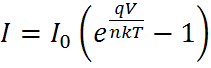 n = ideality factor, a number between 1 and 2 which typically increases as the current decreases.